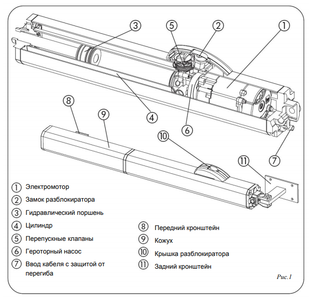 Модели с функцией гидравлического замка не требуют установки внешних электрических замков на створки ворот, так как обеспечивают физическое запирание створки в тот момент, когда двигатель не работает.