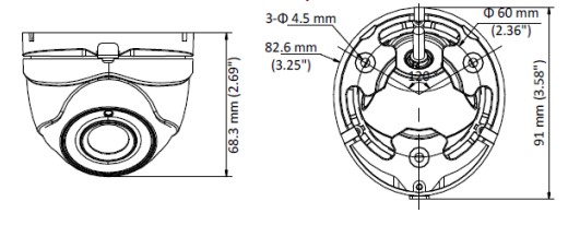 Видеокамера HiWatch DS-T503 выполнена в форм-факторе компактной сферы. Корпус устройства защищен от попадания внутрь влаги и пыли по стандарту IP67 (допускается кратковременное погружение на глубину до 1 метра). Модель поставляется с фиксированным объективом 2.8, 3.6 или 6 мм (F2.0), углы обзора 86.5° / 70.1° / 46° соответственно. 3-осевой конструктив крепления оптики обеспечивает легкую регулировку направления «взгляда» камеры. Интерфейсы: BNC-разъем аналогового видеовыхода (HD-TVI выход) и гнездо подключения источника питания 12 В.